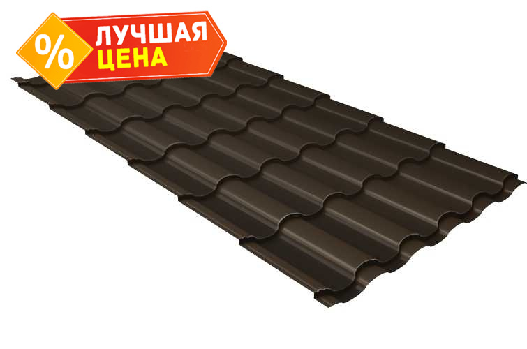 Металлочерепица Grand Line Kredo (Кредо) 0,5 Velur RR 32 Темно-коричневый