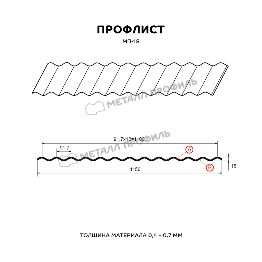 Профиль МП-18 имеет толщину 0,5 мм, что обеспечивает прочность и долговечность материала. Он изготовлен из металла высокого качества, что гарантирует его устойчивость к коррозии и воздействию атмосферных условий.
