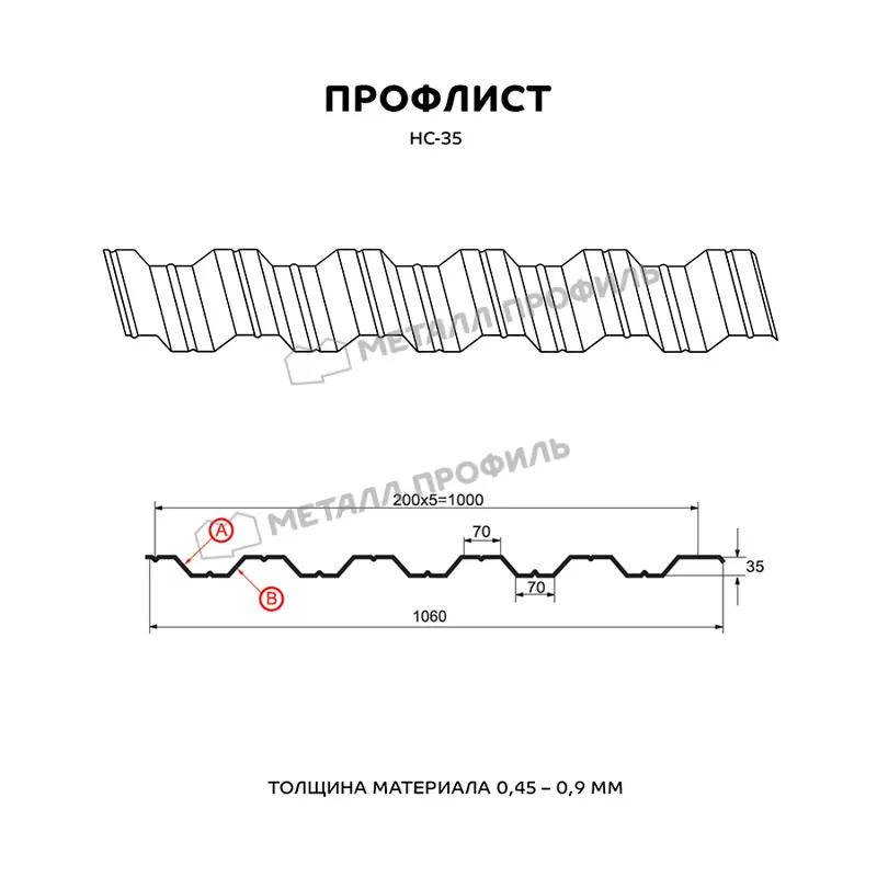 Профиль НС-35 имеет толщину 0,65 мм, что обеспечивает прочность и долговечность конструкции.