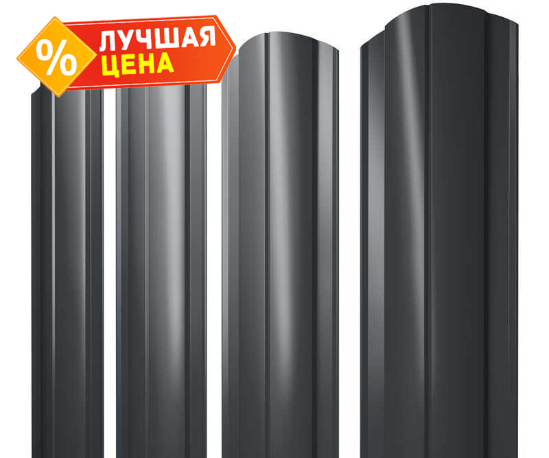 Штакетник Круглый фигурный Grand Line 0,5 Satin RAL7016 Антрацитво-Серый