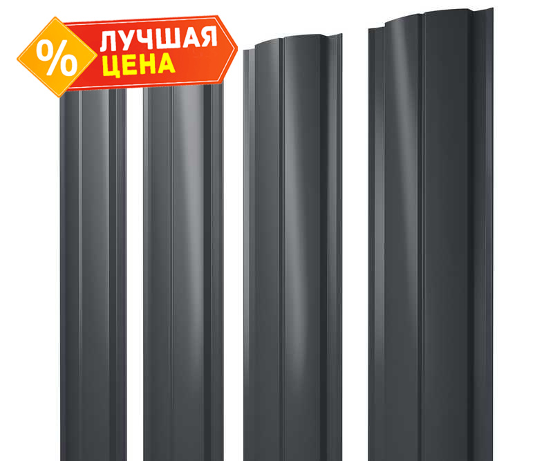 Штакетник Полукруглый Slim Grand Line 0,45 Полиэстер - double RAL7024 Мокрый Асфальт
