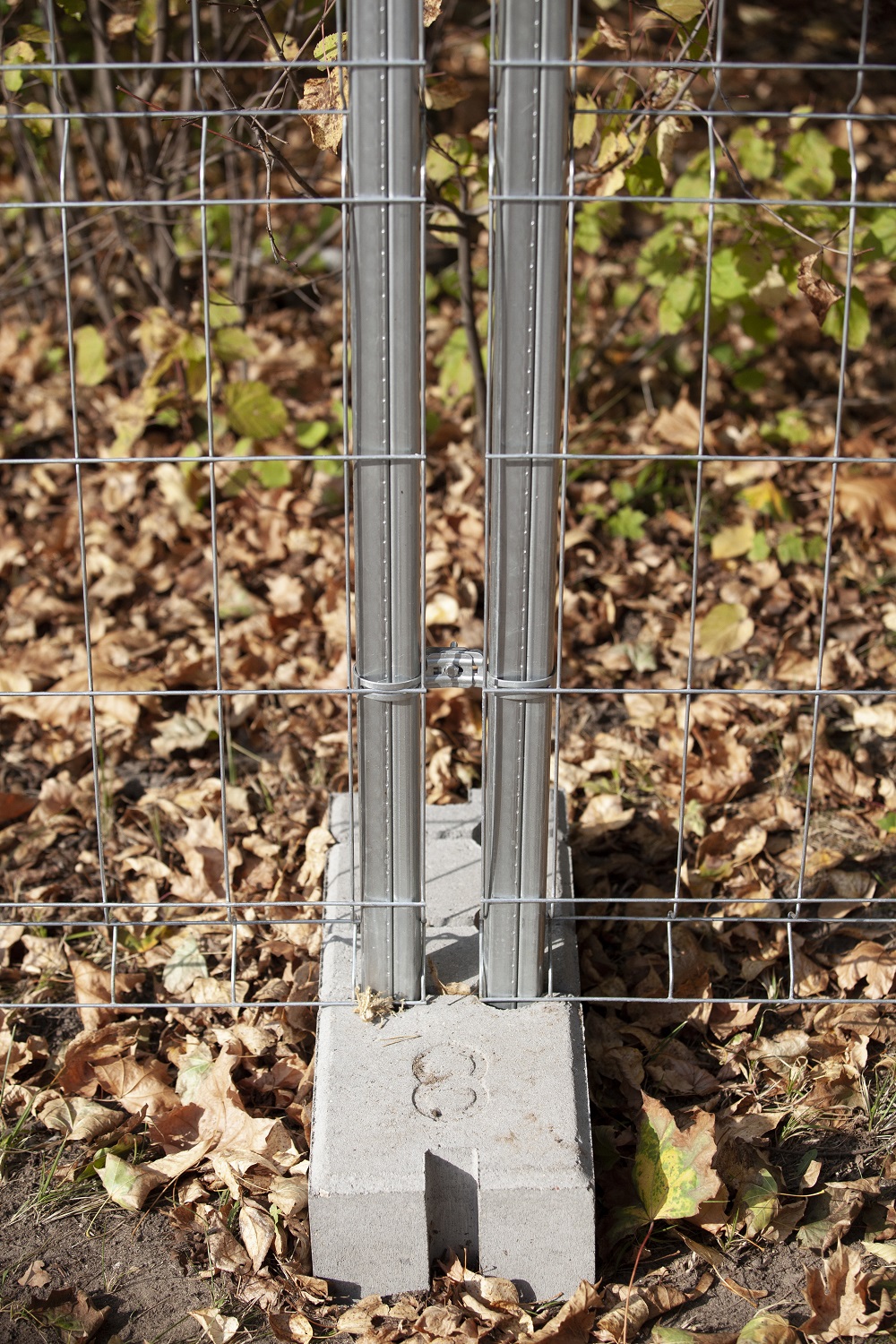 Основание бетонное обеспечивает высокую устойчивость конструкции временного ограждения.